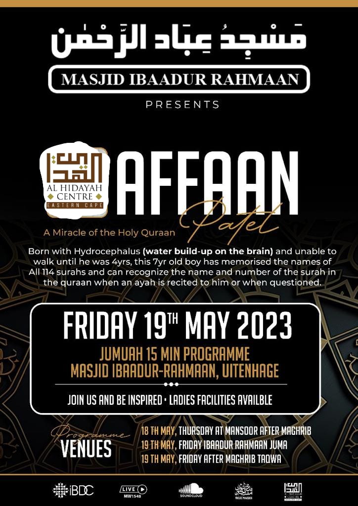 Ibaadur Rahmaan: Moulana Shuaib Laher plus 15 minute program with Affaan Patel