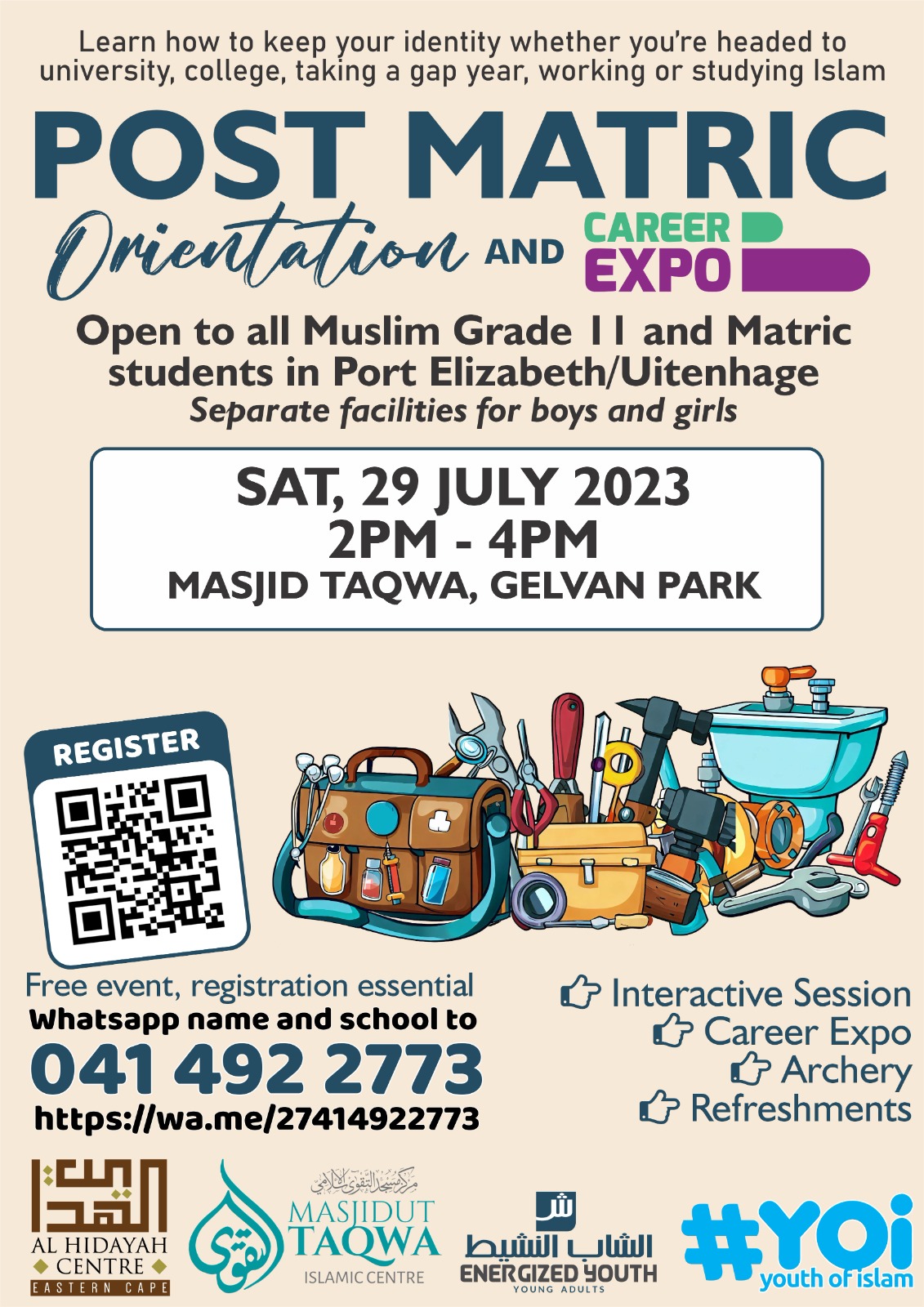 29: Post Matric Orientation at Masjid Taqwa. See poster