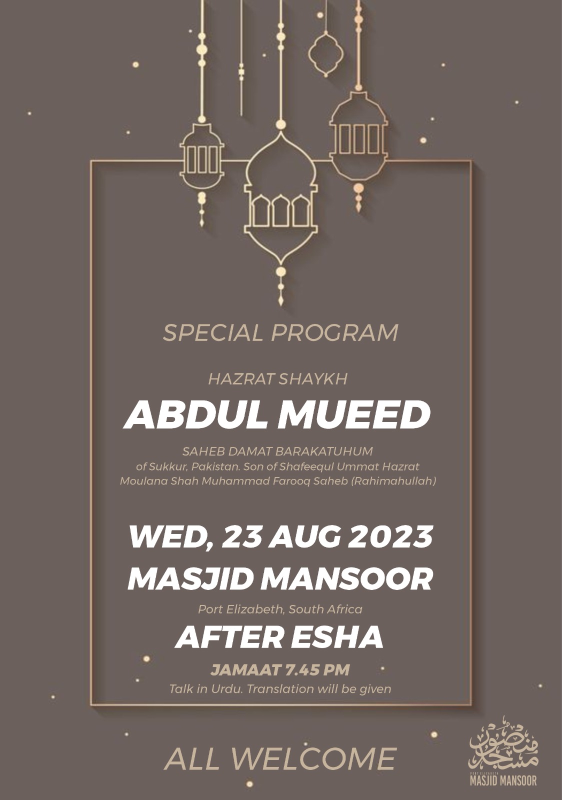 NMU: Moulana Siraaj Joubert | Talk 13:05 Khutba 13:25