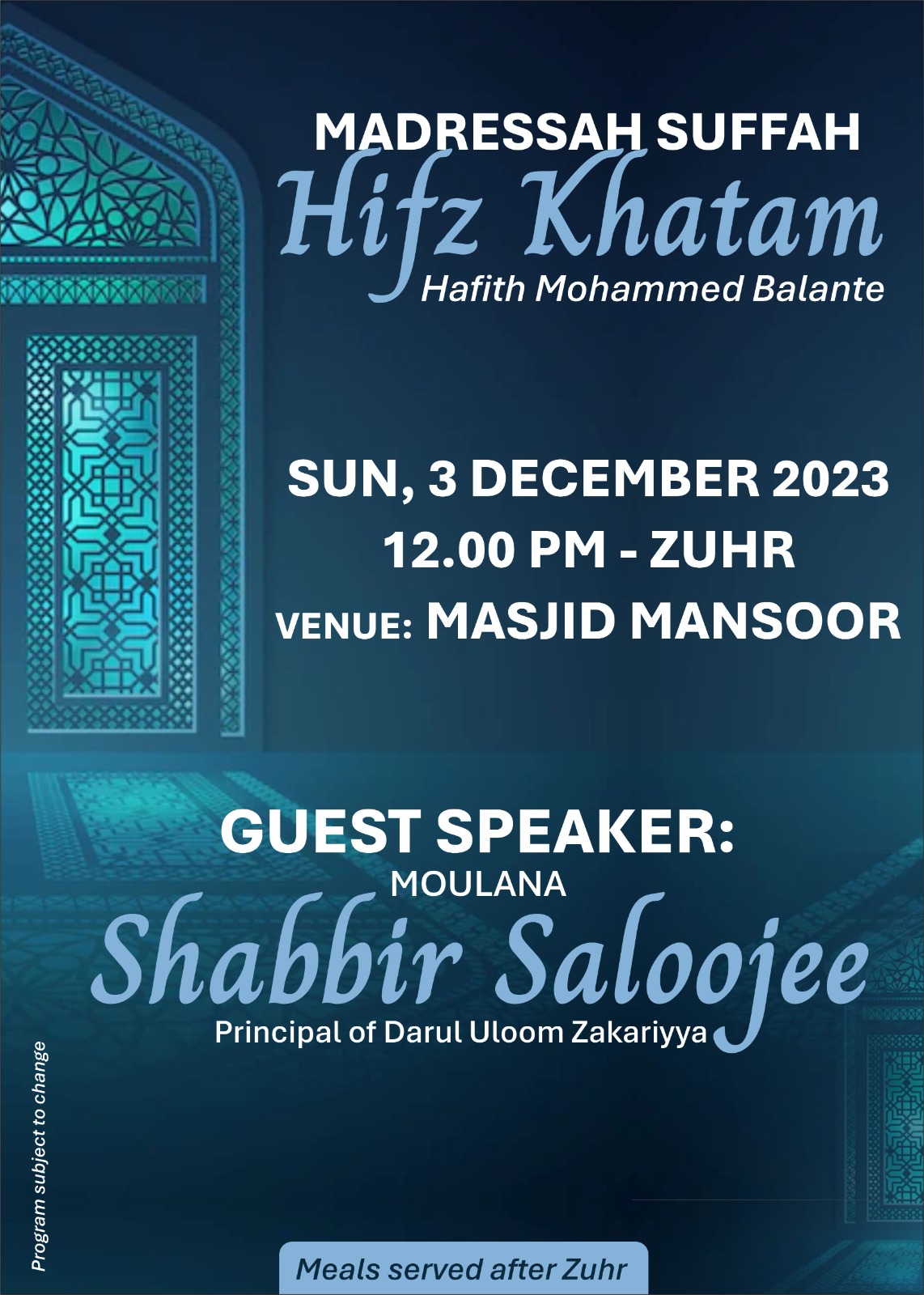 NMU: Moualan Maseehullah Desai | Talk 13:05 Khutba 13:25