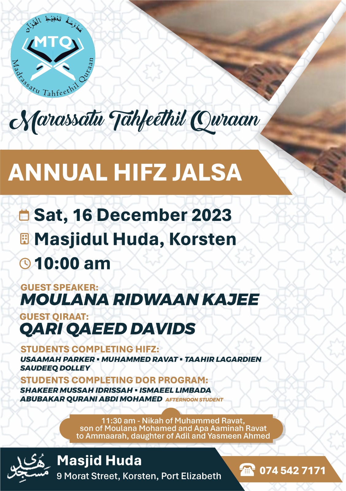 NMU: | Talk 13:05 Khutba 13:25