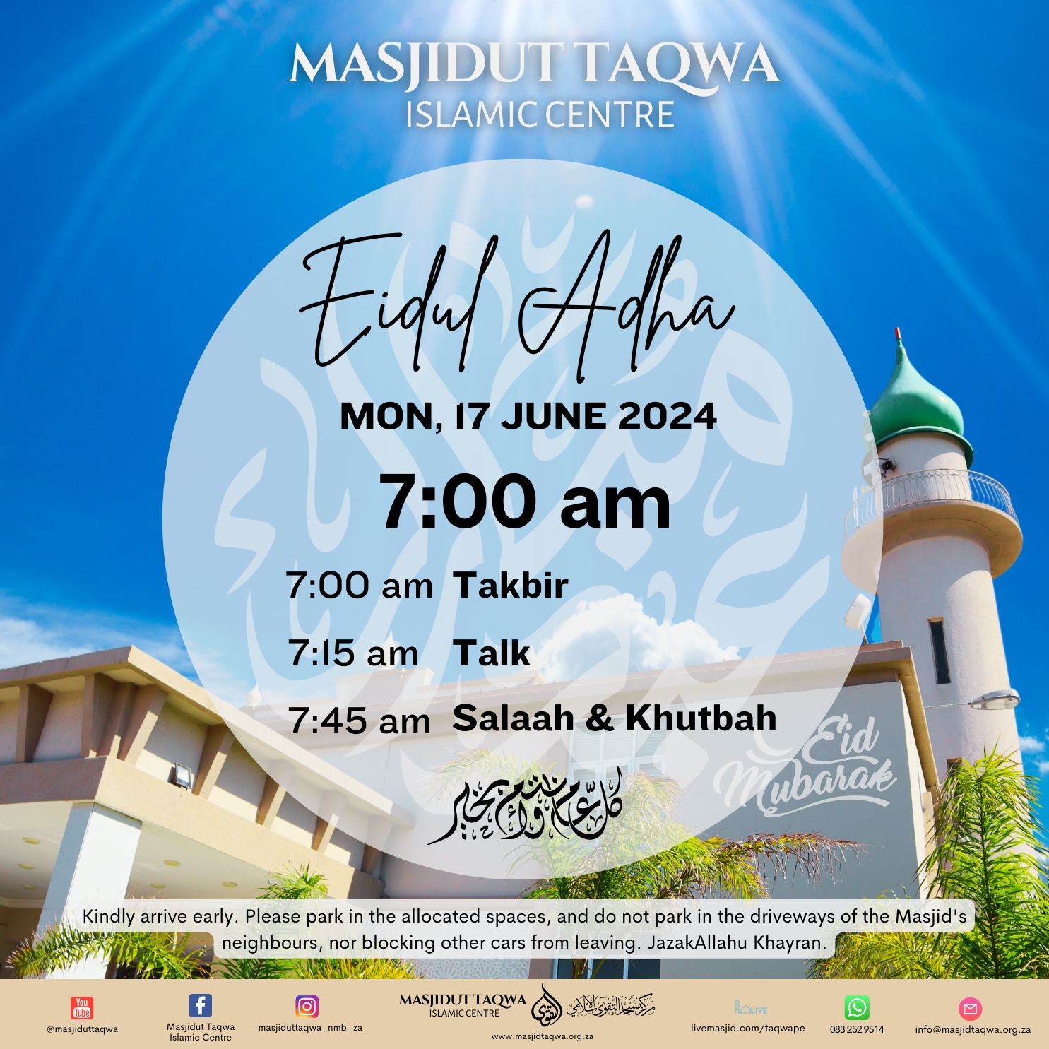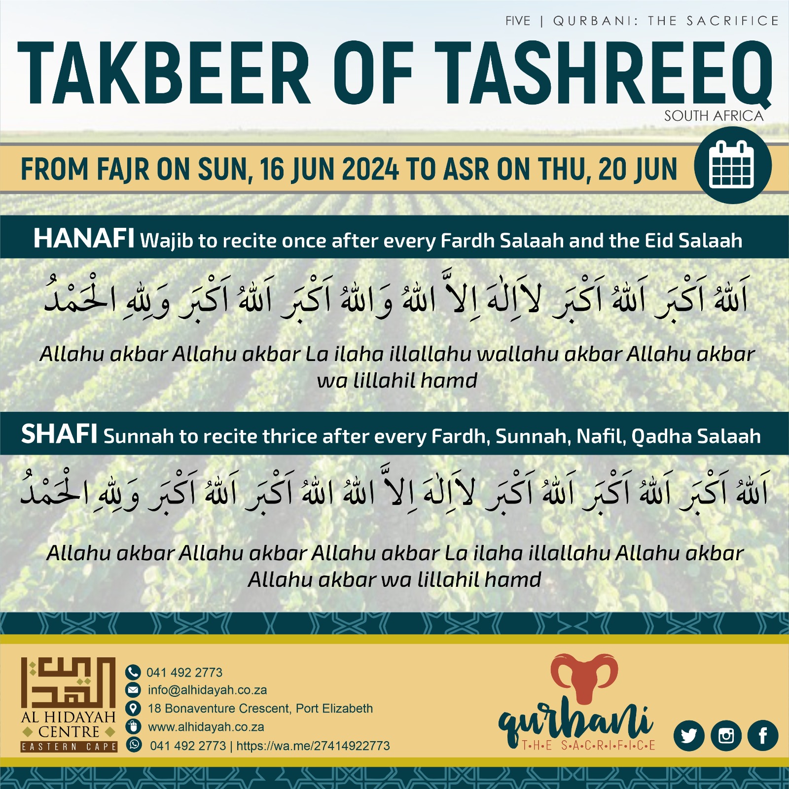 16: Takbeer of Tashreeq starts at Fajr until Asr on Thu, 20 June